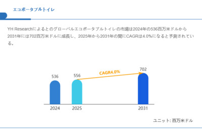 エコポータブルトイレ市場規模、2031年には702百万米ドルに拡大見込み