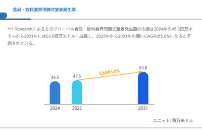 YH Research株式会社(本社:東京都中央区)は、「グローバル食品・飲料業界用膜式窒素発生器のトップ会社の市場シェアおよびランキング 2025」調査レポートを2025年10月31日に発行しました。当レポートでは、食品・飲料業界用膜式窒素発生器市場に関する包括...
