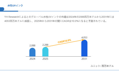 水性UVインク市場規模、2031年には4053百万米ドルに拡大見込み