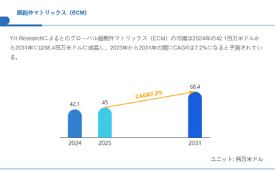 細胞外マトリックス(ECM)市場規模の成長見通し:2031年には68.4百万米ドルに到達へ
