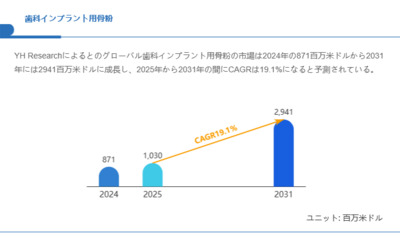 歯科インプラント用骨粉市場規模、2031年には2941百万米ドルに拡大見込み