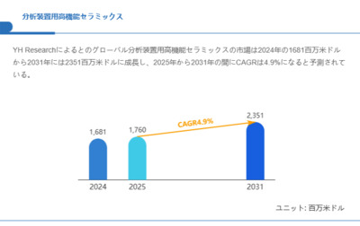 分析装置用高機能セラミックス市場規模、2031年には2351百万米ドルに拡大見込み