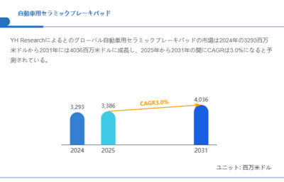 自動車用セラミックブレーキパッド市場規模、2031年には4036百万米ドルに拡大見込み