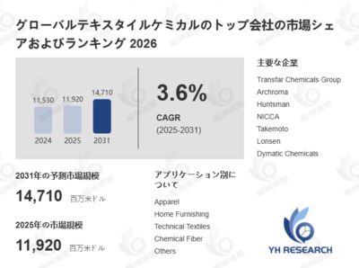 世界と日本のテキスタイルケミカル市場分析:規模、成長率、企業ランキング2026