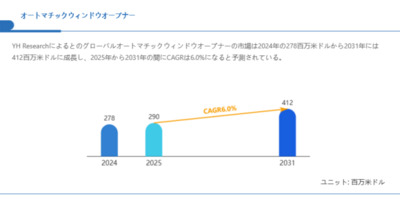 日本のオートマチックウィンドウオープナー市場調査:シェア、売上推移、今後の市場機会2025-2031