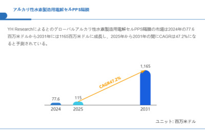 アルカリ性水素製造用電解セルPPS隔膜市場、CAGR47.2%で成長し、2031年には1165百万米ドル規模に