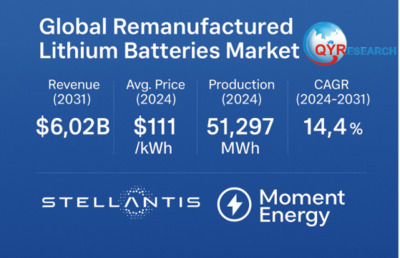 世界のリマニュファクチャードリチウム電池市場は、StellantisとMoment Energyに牽引され、14.4%のCAGRで2031年までに6023百万米ドルに到達