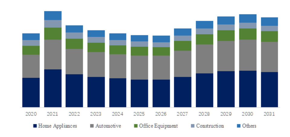 製品用途別では、現在Home Appliancesが最大のセグメントであり、39.5%のシェアを占めています。