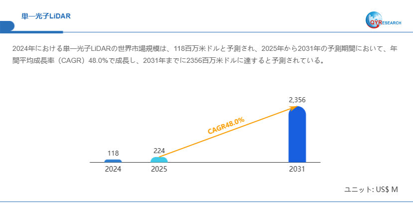 世界の単一光子LiDAR市場成長率:2031年までに48.0%に達する見込み