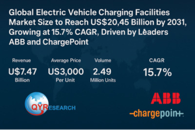 世界のEV充電設備市場規模は、ABBとChargePointに牽引され、2031年までに204億5,000万米ドルに到達すると予測