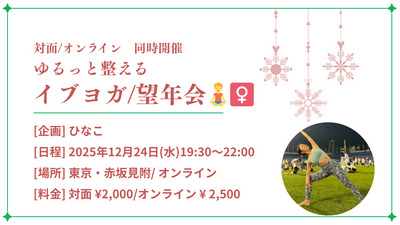 12/24の夜は「ゆるっと整えるイブヨガ」&リアル限定の望年会。