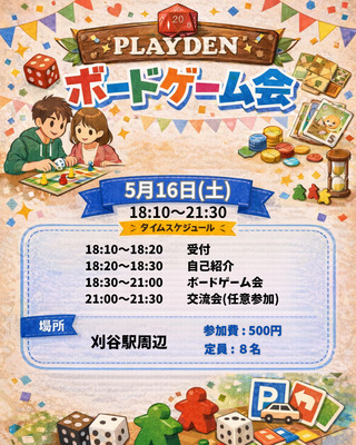※ボードゲームは主催者や参加者の私物のため、大切に扱ってください。